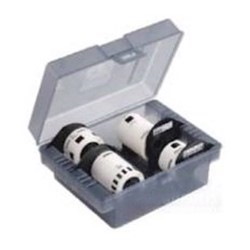 Plastic storage box with 4 starter rolls (CD/DVD labels, address labels, 62mm wide continuous tape and 24mm wide round labels)